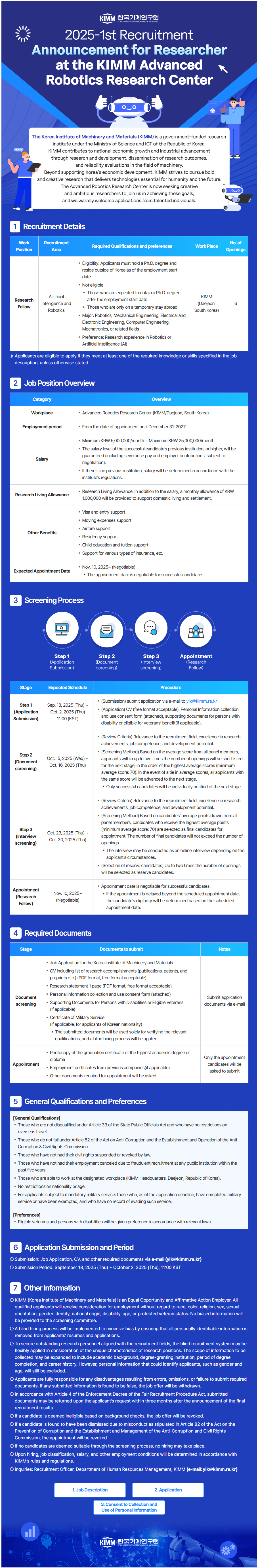 한국기계연구원에서 해외우수 과학 채용 중에 있습니다. 자세한 내용은 첨부된 공고문과 서류들을 참고하시기 바랍니다.